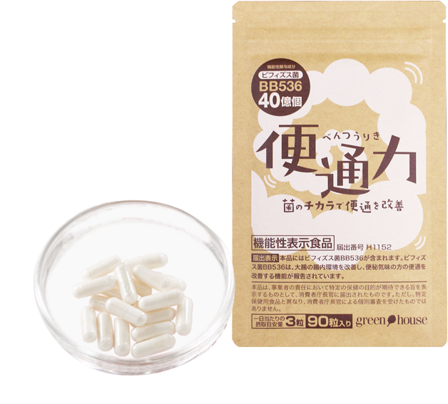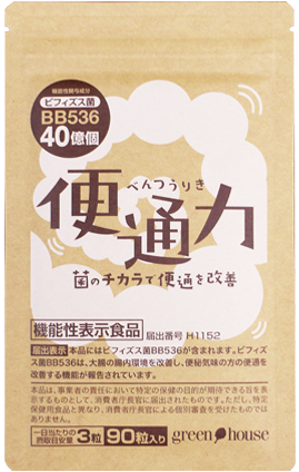 - 本品にはビフィズス菌BB536が含まれます。ビフィズス菌BB536は、大腸の腸内環境を改善し、便秘気味の方の便通を改善する機能が報告されています。