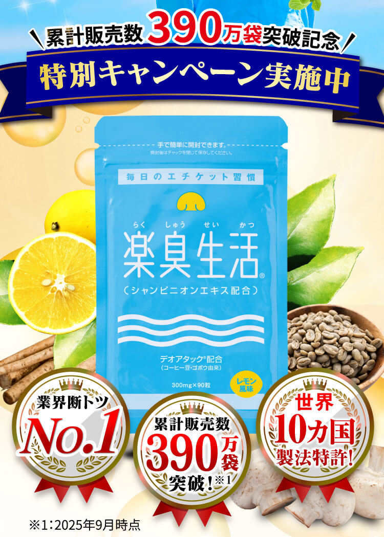楽臭生活はシャンピニオンエキスを225mg配合!