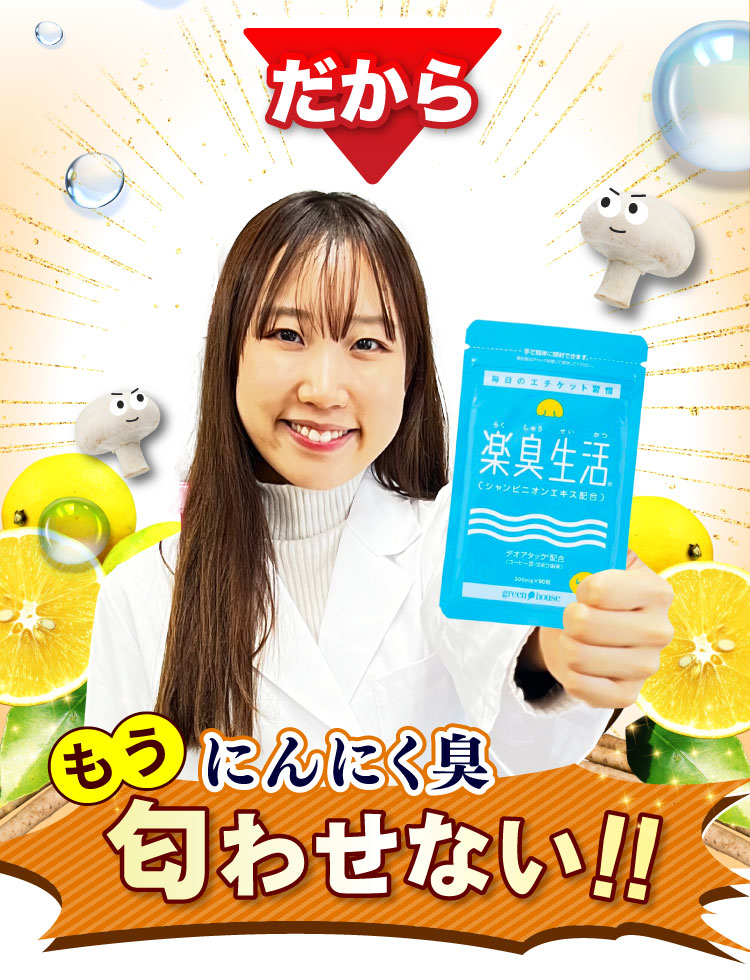 楽臭生活を購入して15年以上になります。主人に購入して飲んでもらっていますが、最初は主人も馬鹿にしていましたが、今では飲まないことがなくなりました。ホントに飲んだときと飲まないときの翌朝の口臭や体臭が全然違うのです。のみわすれると翌朝わかるほど違うのです。主人も自分の匂いに敏感になるようになり、必ず毎日飲むようになりました。なくなると、楽臭生活ないよ、新しいの頂戴というほどに毎日の主人の習慣になりました。お蔭でホントに体臭や、口臭、加齢臭など、全く気にならなくなりました。やはり男性はどうしても体臭が強かったりしますし、歳を重ねると加齢臭も加わります。どんなにお風呂で洗ってもどうにもならない匂いの悩みはホントに楽臭生活で解決しました。これからもずっとお世話になります!いま、私もたまにお世話になってます。